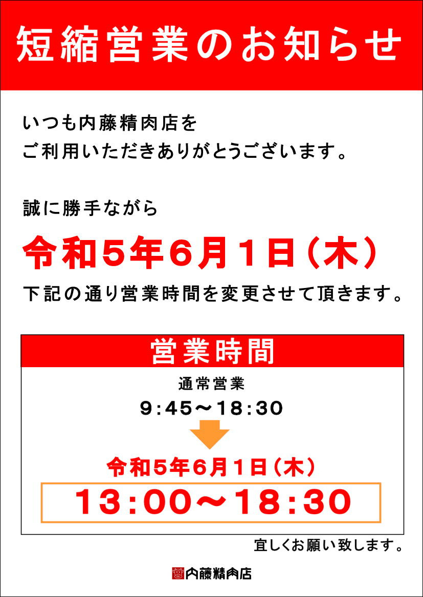 短縮営業のご案内