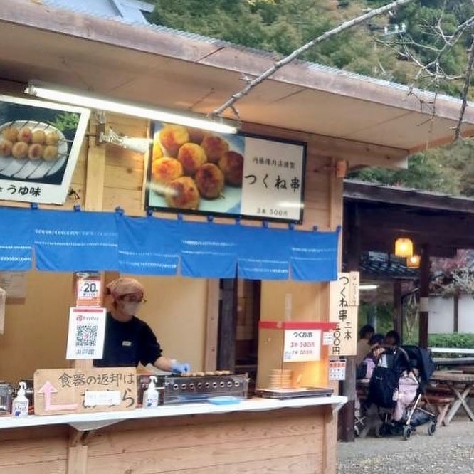 香嵐渓、三州足助屋敷にて「つくね串」販売中!