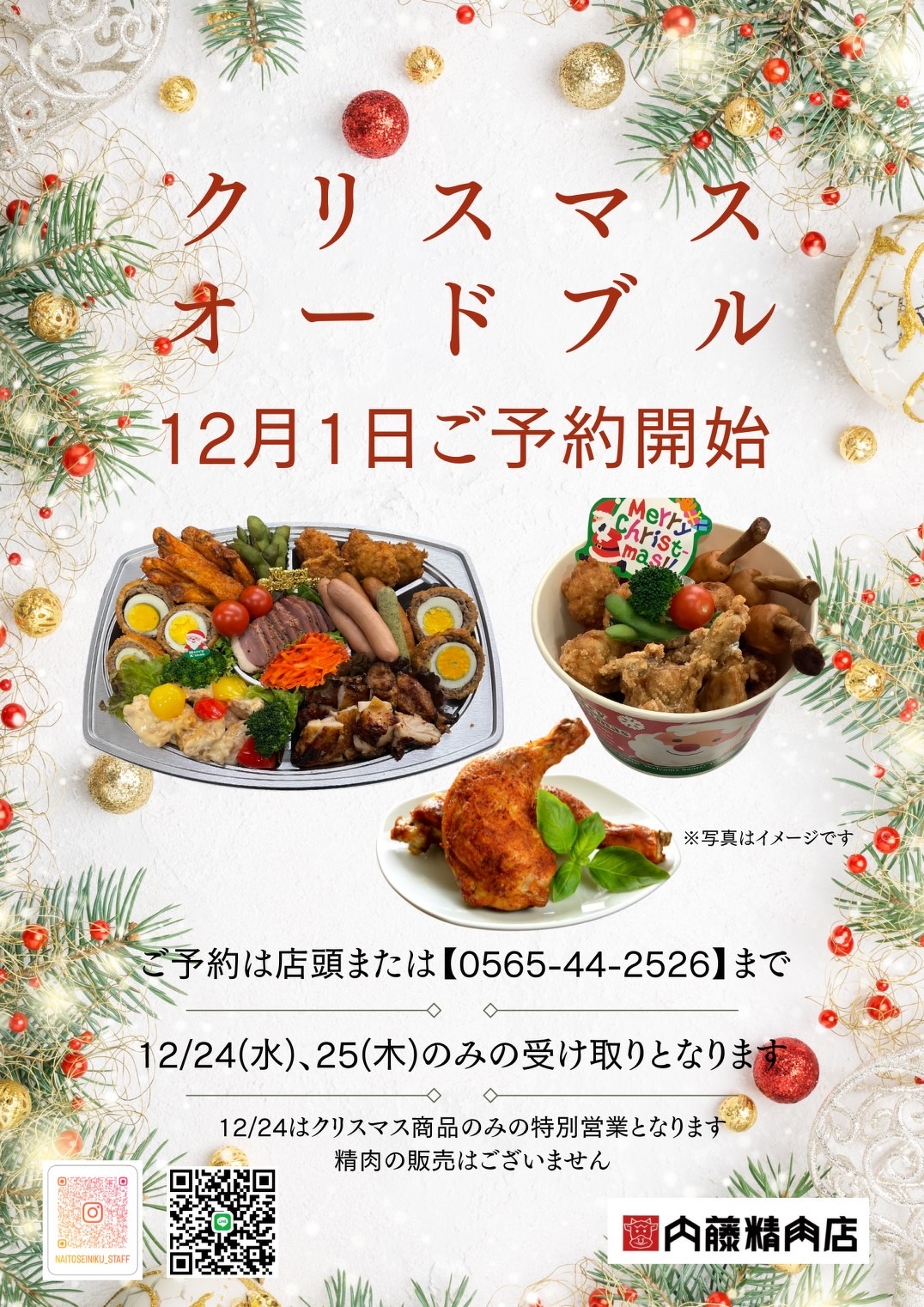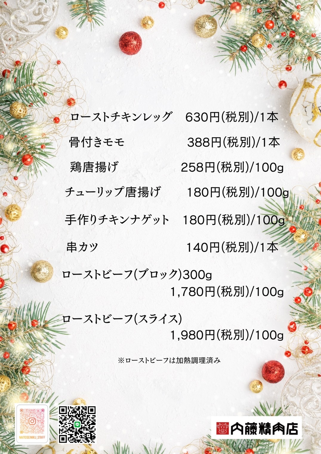 ※12月24日(水)はクリスマス商品のみの特別営業となり、精肉の販売はございません。