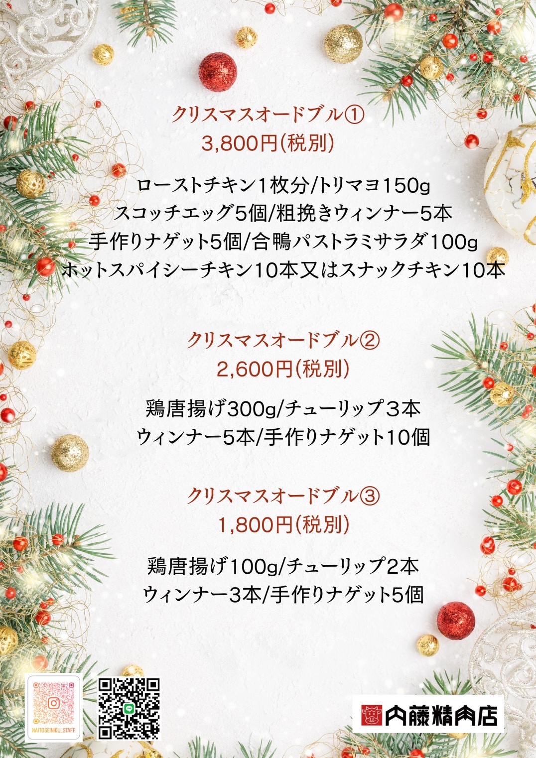 内藤精肉店のクリスマスオードブルは完全予約制です。