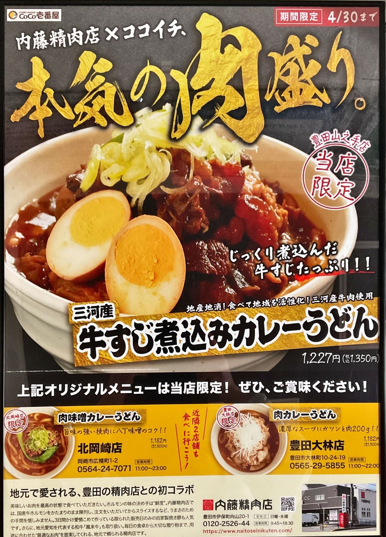 #内藤精肉店 #街のお肉屋さん #ココイチ #地域活性化 #地産地消 豊田グルメ 岡崎グルメ 愛知ランチ カレー部 うどん部 肉テロ
