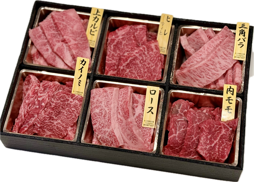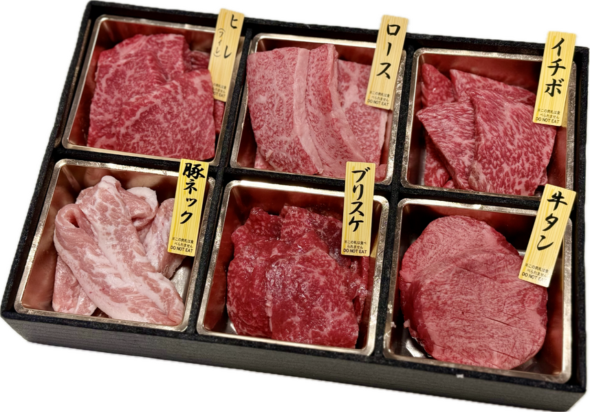厳選された国産和牛を中心に、国産豚ネック(トントロ)やアメリカ産牛タン焼肉用とバラエティ豊かな6種類の部位を詰め合わせた特別ギフトです。