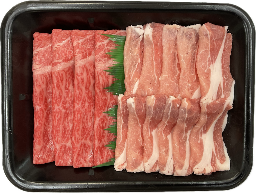 国産和牛モモ肉と、国産豚背ロースを両方お楽しみいただける欲張りなセットです。