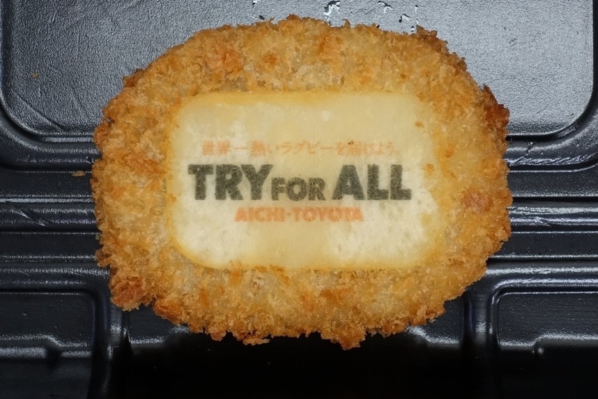みんなで「TRY FOR ALL」ロゴ入りコロッケを食べて、喜びを分かち合おう!