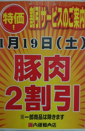 豚肉2割引、土曜日にやります!